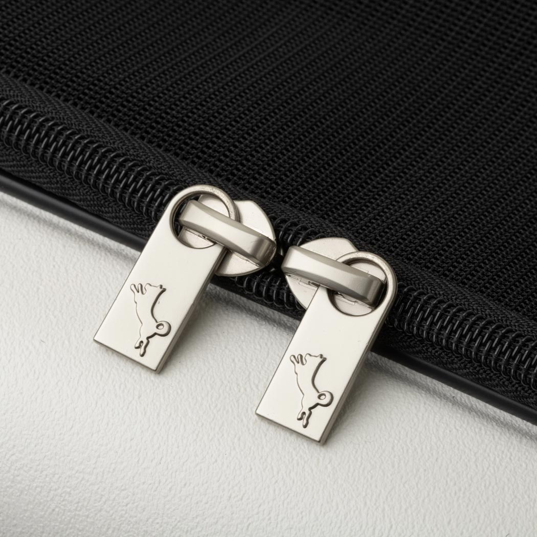 引手を引かないと内側から開かない安全ロックファスナーを採用。