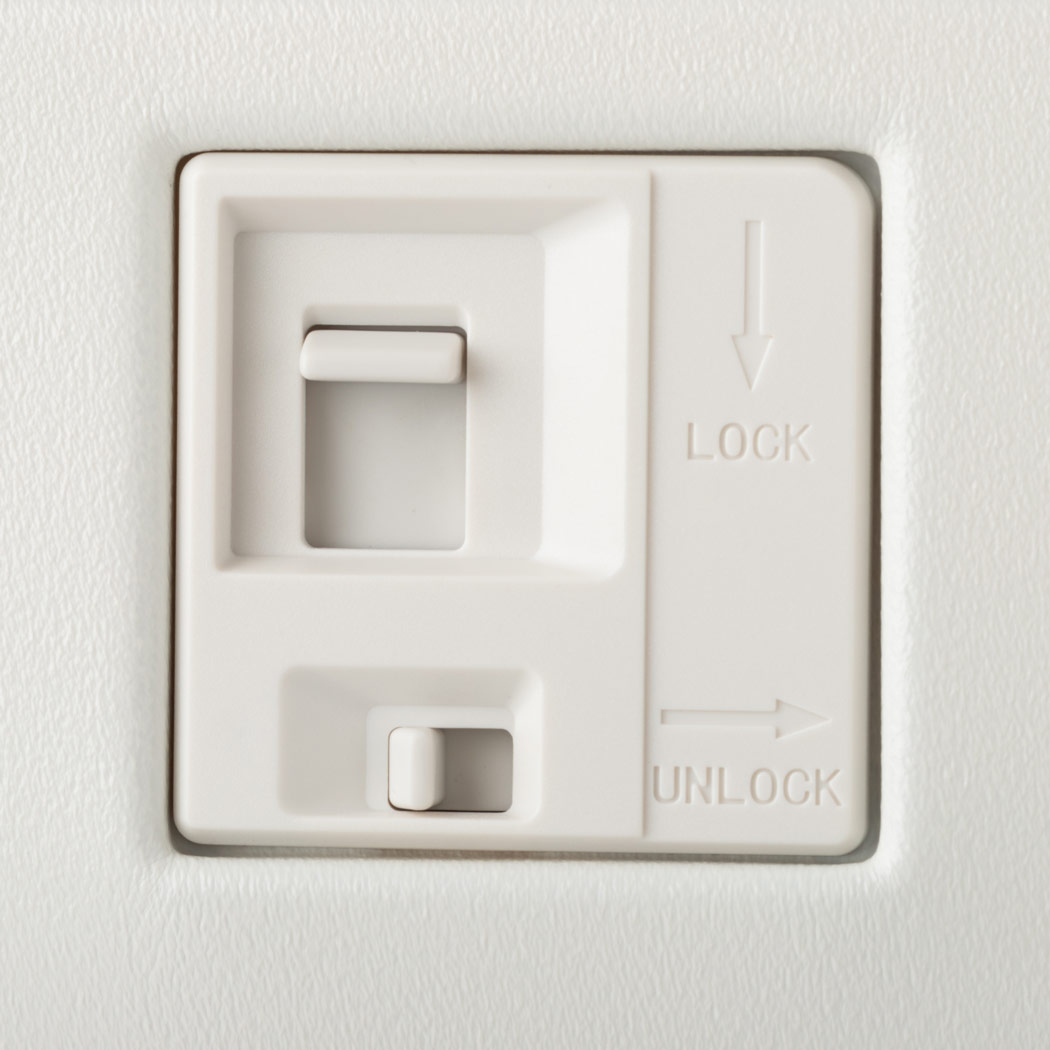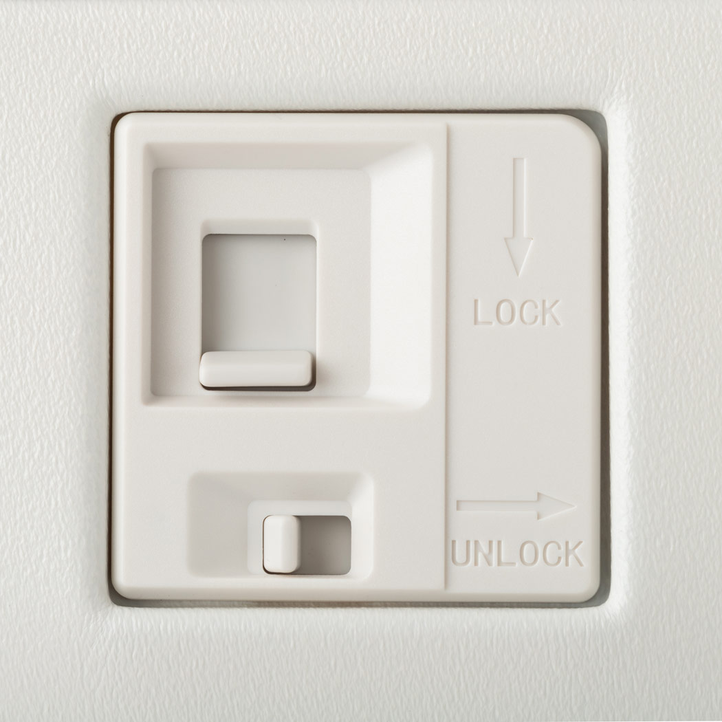 ボタン操作でキャスターをロックすることができ、電車やバスでも安心して利用できます。 -