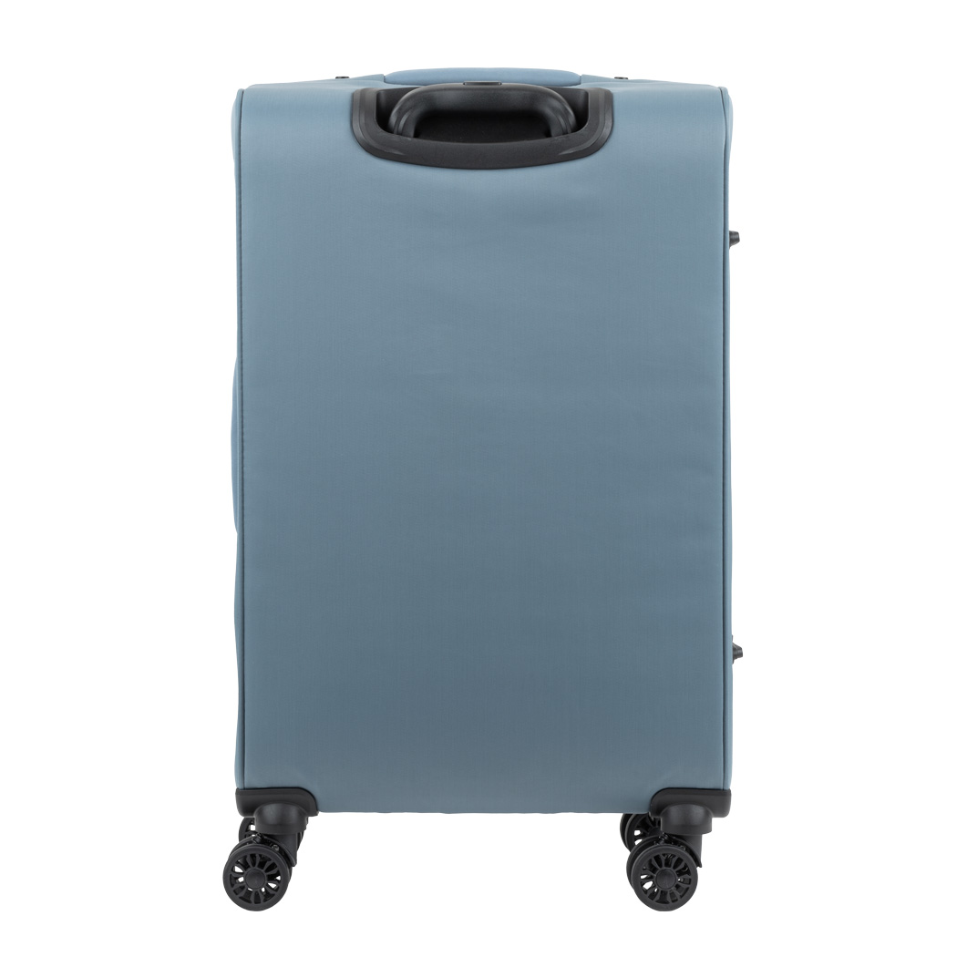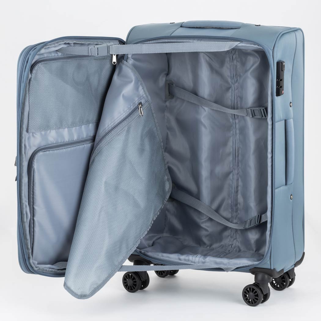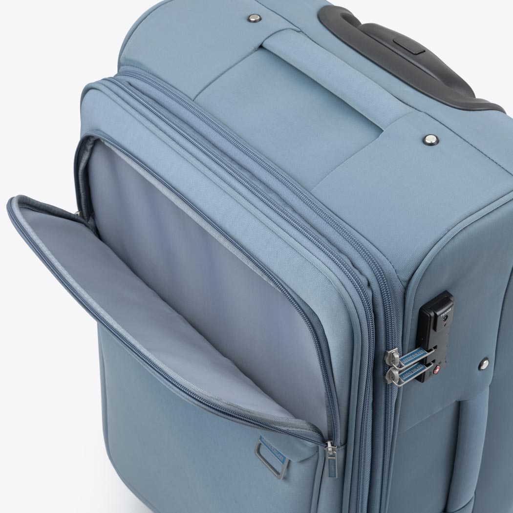 旅先で荷物が増えても安心な容量拡張機能を搭載。不正なこじ開けを防ぐ防犯ファスナーや静音で滑らかな走行を可能にするクッション付きダブルキャスターなど機能が充実。